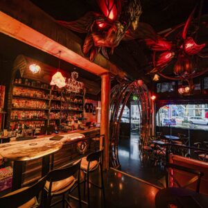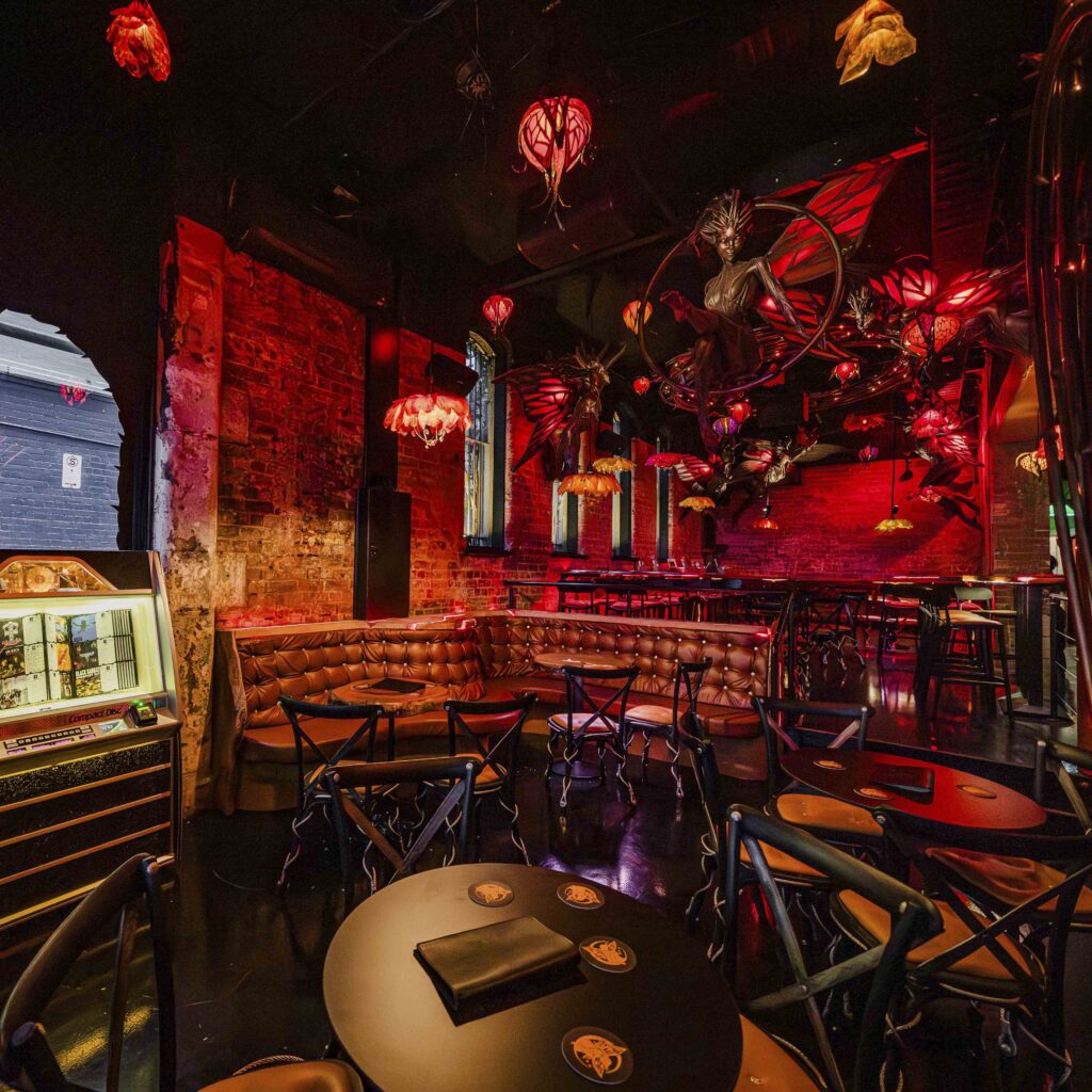 It has the grit, the looseness, the rock-and-roll energy of a late-night haunt, but layered with polish, spectacle, and just enough theatre to make it feel intentional. Think neon glow, moody corners, fantasy-leaning decor, and a room that hums like something might happen at any moment.