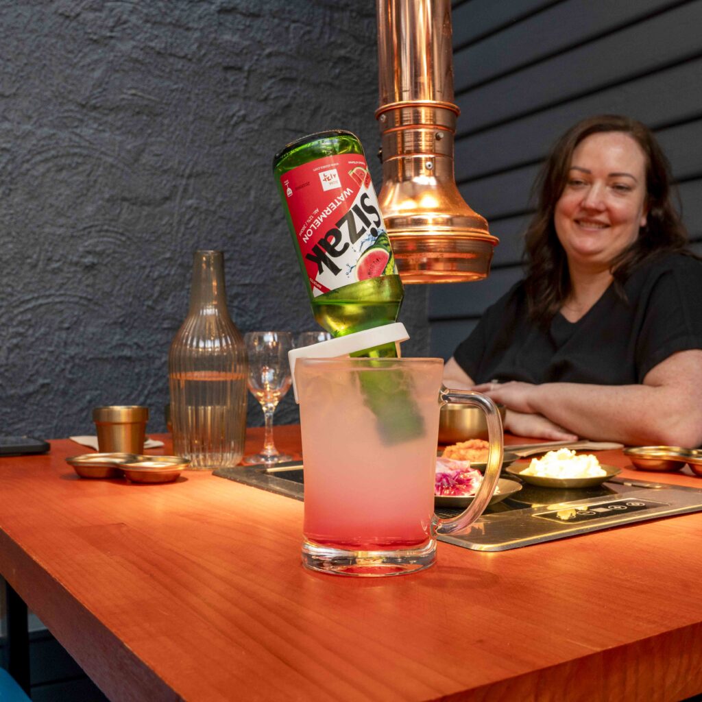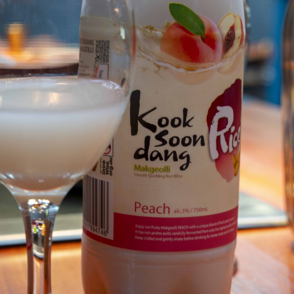 Drinks matched the mood perfectly. The Bloody soju cocktail — a mix of watermelon soju, Red-Ade, Milkis, and soda — was refreshing and playful, a sweet, fizzy balance of fruit and light tang. The Makgeolli Peach Rice Wine with its subtle fizz and creamy texture was an unexpected standout that matched the grilled meats beautifully.