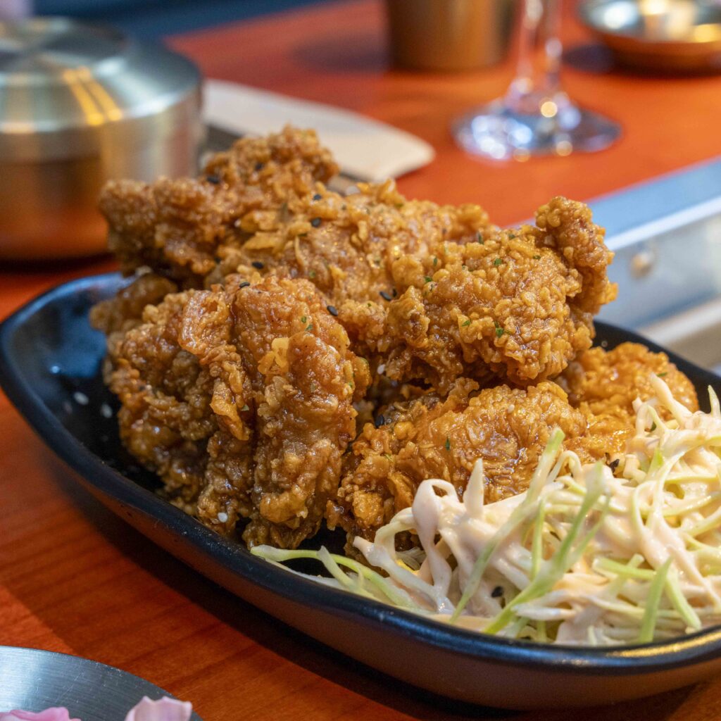 The menu at Dagach is extensive but considered — with a wide range of options to suit everyone’s needs. We started with the K-Fried Gyoza, crisp parcels of pork that shattered perfectly with each bite. They came paired with a sesame-dressed cabbage salad that added a refreshing crunch, cutting through the richness beautifully. Next, the K-Fried Chicken — the Soy Honey variety — arrived glossy and golden, coated in Dagach’s signature sauce. Sweet, savoury, and addictively sticky, it was everything you want Korean fried chicken to be: crunchy, tender, and impossible to stop eating. Some of the best Korean fried chicken we’ve had!