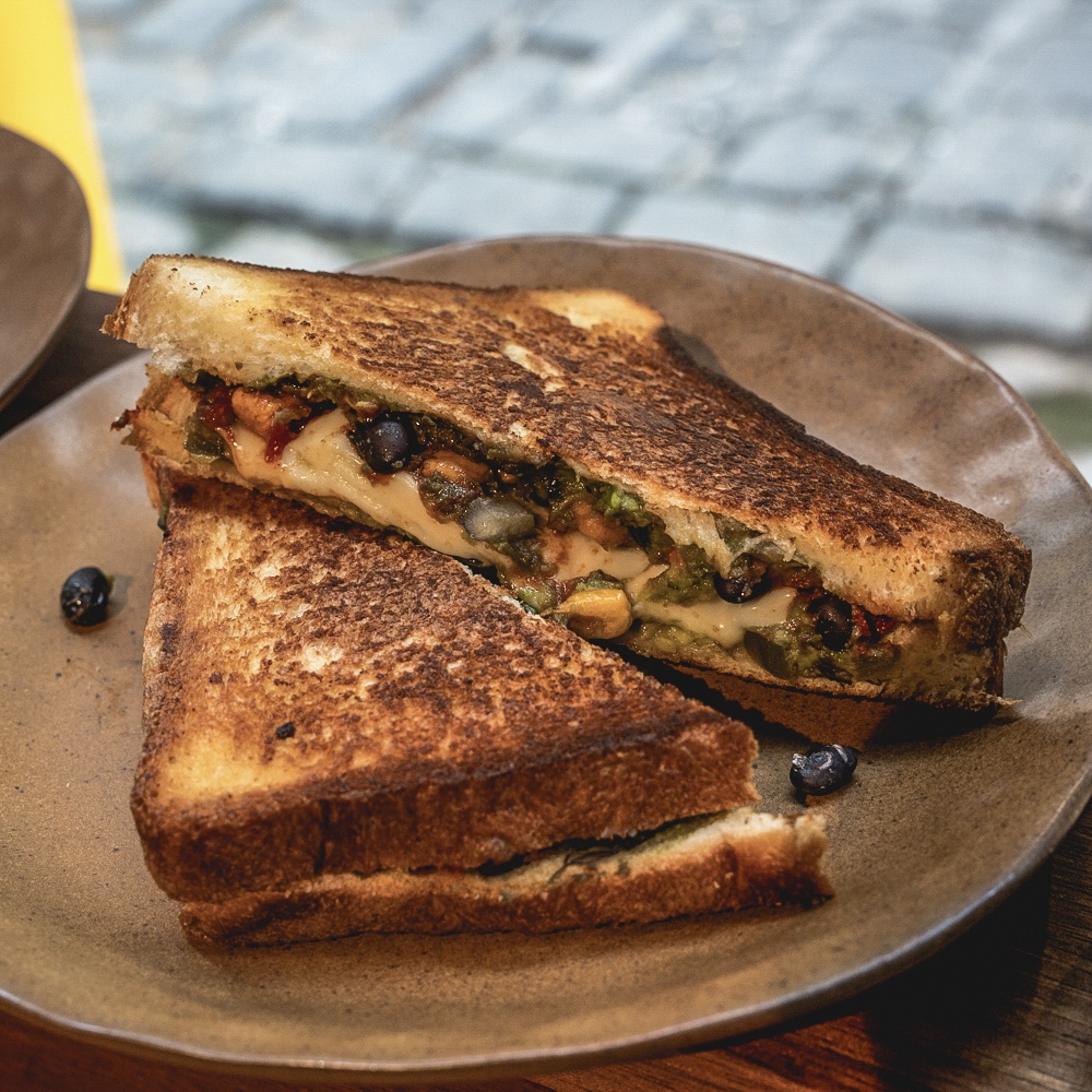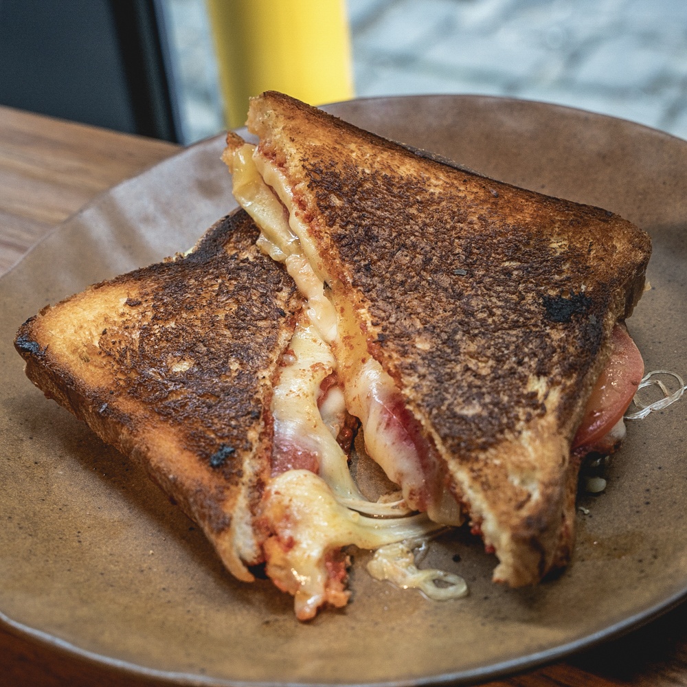 If you’re one for a classic cheese toastie, The Greenhorn is for you! With a blend of mozzarella, cheddar and swiss gruyere, it is perfect in its simplicity and offers a little something extra to such a classic.