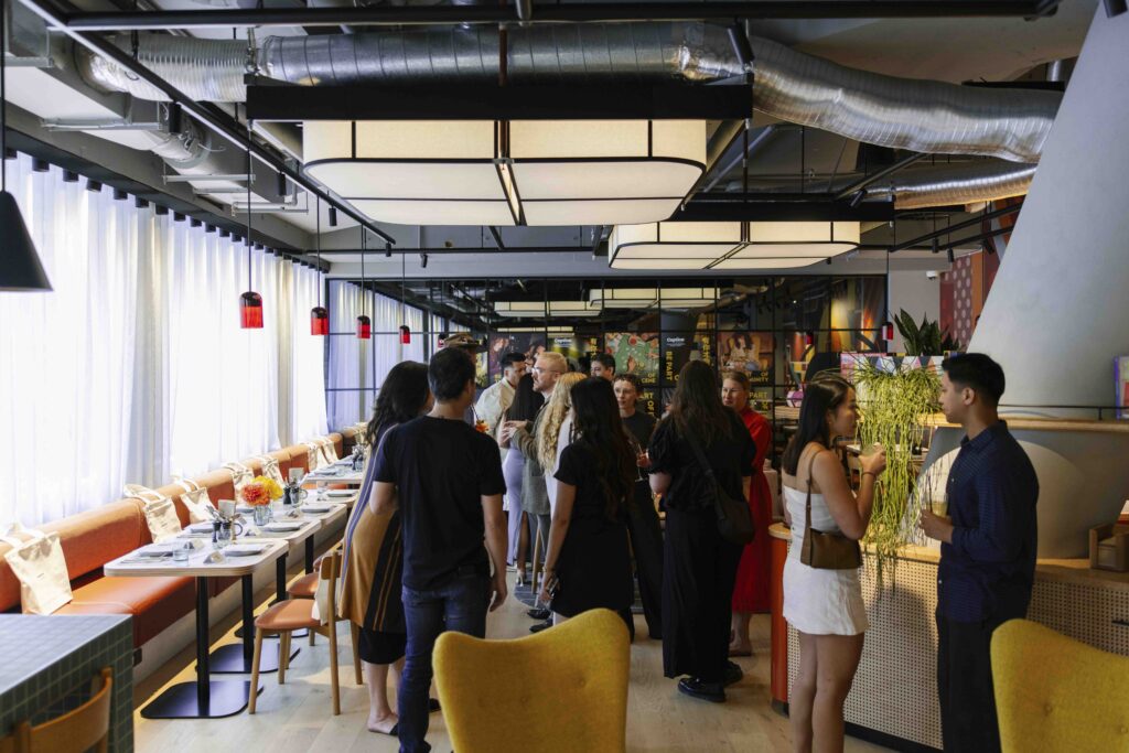 Chris Yee’s art around Talk Shop translates Haymarket’s street culture into a welcoming interior language, turning a cafe stop into a cultural experience. By layering local storytelling into the space, the venue becomes a reminder of the neighbourhood’s history and ongoing creativity, not just a backdrop for meals. Not only in Talk Shop itself, part of Yee’s mural is also in every hotel room at Caption By Hyatt Central Sydney.
